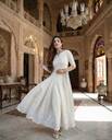 This women’s ethnic gown is designed in a white color with detailed embroidery across the fabric. It features an ankle-length flared silhouette that provides ease of movement and a traditional appearance. The gown is suitable for ethnic wear needs such as festive occasions, cultural events, family gatherings, and casual traditional use. The design includes a round neckline with a small notch for comfortable wear. Three-quarter sleeves offer balanced coverage and practicality for regular use. Embroidered detailing is present on the bodice and along the hem, adding texture and visual definition to the overall design. The fabric is lightweight and breathable, supporting comfort during extended wear. The flared structure allows a relaxed fit and adapts well to different body types. The neutral white shade allows easy coordination with ethnic footwear and accessories. This gown can be worn for traditional functions or casual outings and paired with flats or sandals. The design focuses on comfort, fit, and traditional styling, making it suitable for inclusion in an ethnic wardrobe.