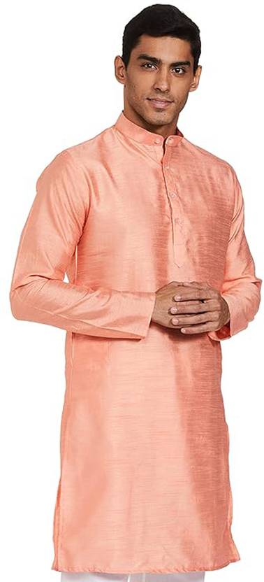 Men Solid Cotton Blend Straight Kurta (Orange)