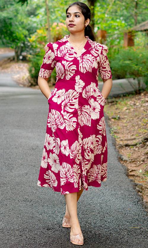 Sun Fashion And Lifestyle Women Maxi Pink Midi/Calf Length Dress