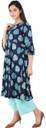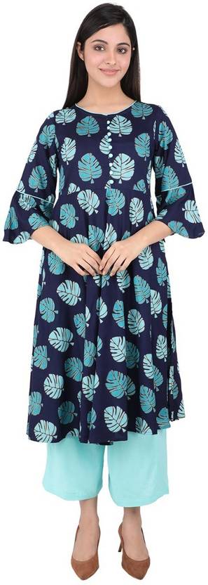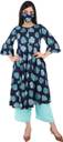 Women Printed Cotton Silk Ethnic Dress (Blue)