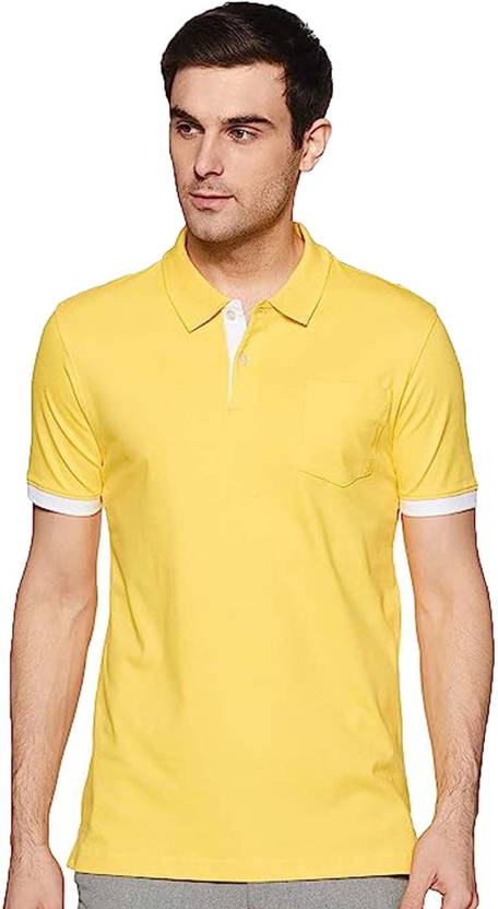 Sunaina Devi Men Solid Polo Neck Cotton Blend Yellow T-Shirt