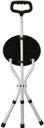 Convenient and light weight, Strong aluminium construction with comfortable plastic molded seat & handle, Tripod design with rubber ferrules with anti slide feet for stability, Portable & fold able - easy to carry ; tripod base with anti, Type Folding Cane Chair