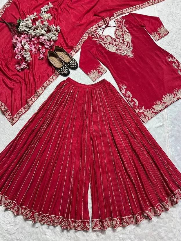 Shop designer salwar suit sets perfect for all occasions. Explore Indian ethnic suit sets and designer salwar suit sets. Pink Salwar Suit For Womens, Pure Heavy Chinon Silk Kurta Fabric, Pure Heavy Chinon Silk With Embroidery Coding Sequence Work Four Side Lace Border.