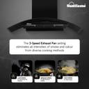 Introducing Sunflame Lamia 90 FL HAC Chimney - a revolutionary 90 cm wide kitchen chimney for home that ensures freshness with its 1200 m³/h high suction capacity. The powerful suction of this chimney for kitchen not only removes smoke and fumes but also eliminates cooking odors, leaving your kitchen fresh and clean. Say goodbye to frequent filter cleaning with Sunflame Chimney's advanced filterless design, enhancing efficiency and reducing maintenance costs. The auto-clean chimney for kitchen features a one-touch heat auto-clean function that allows easy cleaning, prolonging the chimney's lifespan. Enhance your culinary journey with energy-efficient LED lights of this kitchen chimney, providing ample illumination while conserving energy. With a 1-year comprehensive coverage and an impressive 5-year motor coverage, the Sunflame Lamia 90 FL HAC Chimney offers complete peace of mind. Our commitment to customer satisfaction is reinforced by a PAN-India network and 240+ service centers, ensuring a reliable, durable, and long-lasting addition to your kitchen. Experience innovation, convenience, and a new level of cooking pleasure with the Sunflame Lamia 90 FL HAC Chimney.