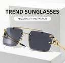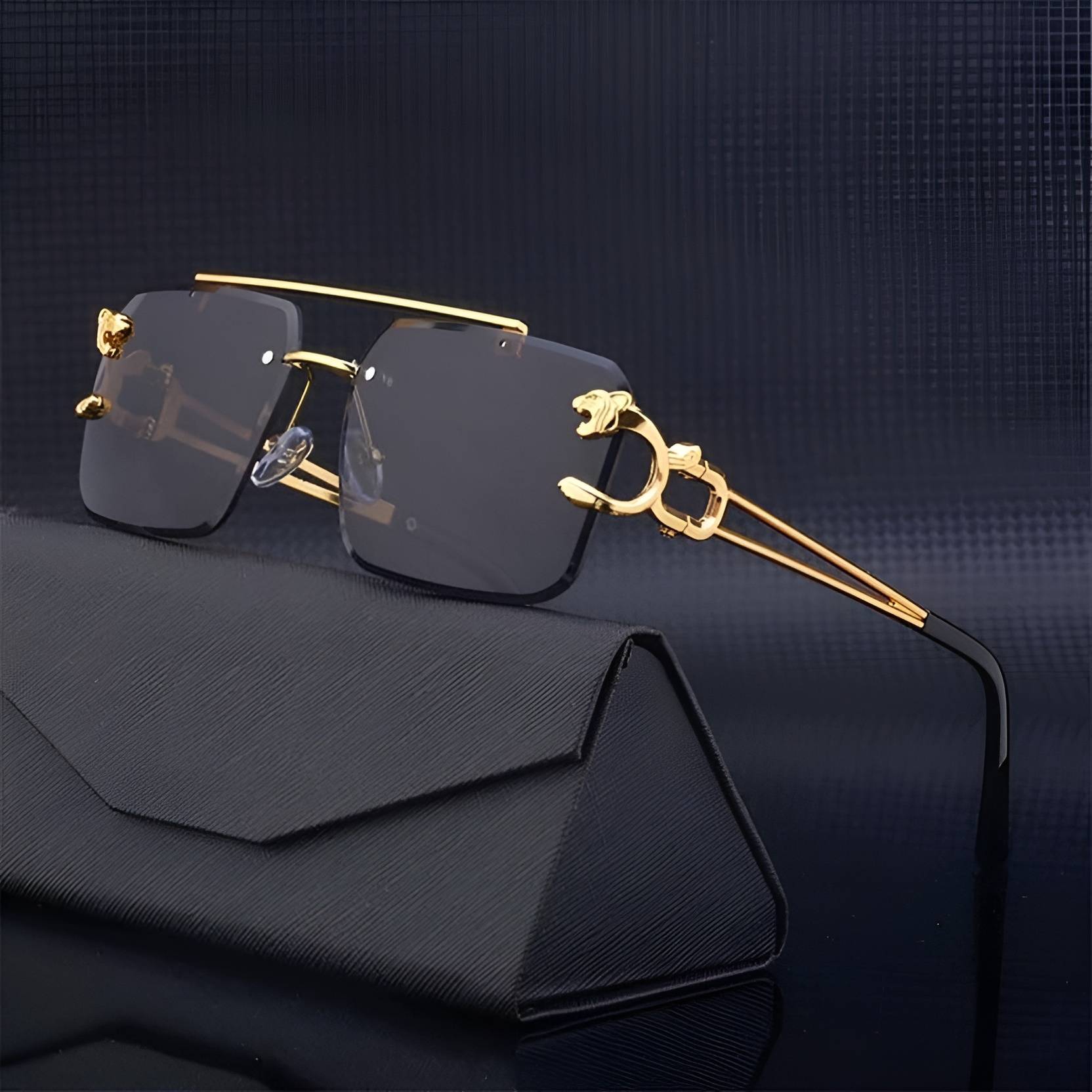 Stylish Rimless Rectangle Sunglasses for Men – Gold Toned Panther Design