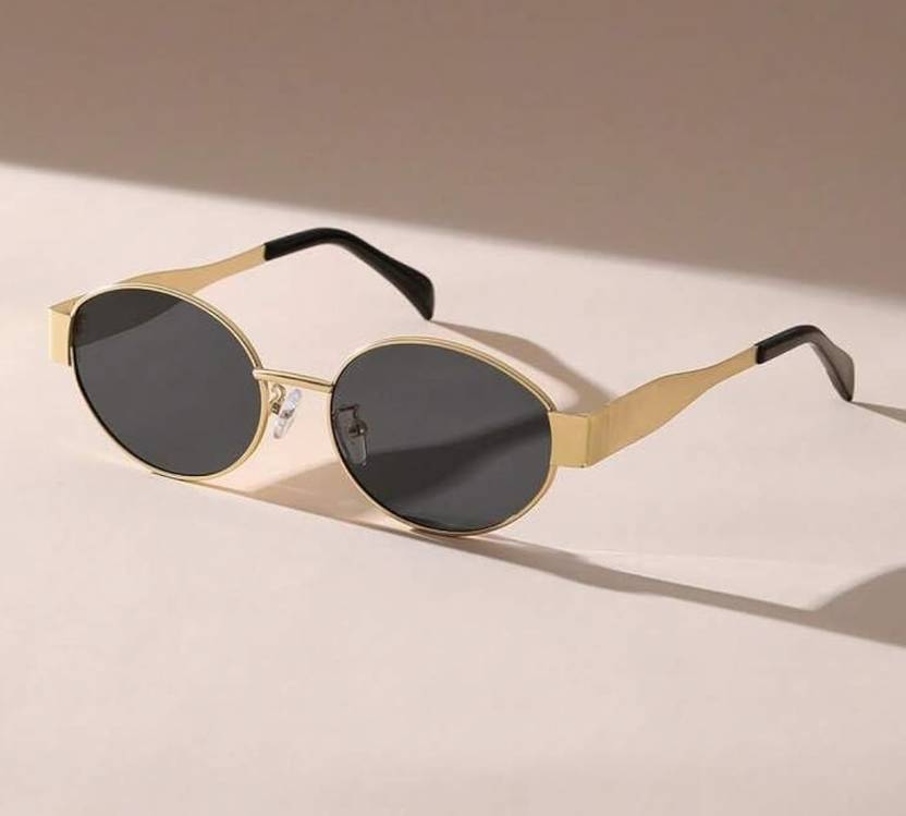 UV Protection Oval Sunglasses (Free Size) (For Men & Women, Black)