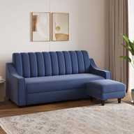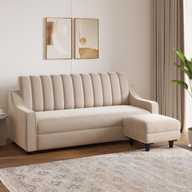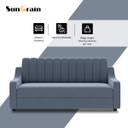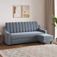 SunGrain Sleek Tufted Velvet 3 Seater Sofa with 1 Ottoman | Premium Comfort | Fabric 3 + 1 Sofa Set (Grey, Pre-assembled)