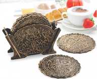 1Box - sunlife Floral Gold Coaster - 6 pcs Coaster with Stand