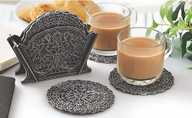 This Floral Silver Coaster (set of 6 pcs) is a unique product from Sun life. This exotic Round Coaster has a six equal round shape coaster. Made from 100% virgin plastic material making them highly durable. This set includes 6 coaster and one stand. Coasters protects the surface of a table or any other surface where you might place a beverage so it is essential product for every home. Great hostess gift for any festive occasions like house-warming function, birthday, wedding ceremony, home tea parties, drinks gift set.