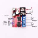 5A Dual DC Motor Drive Remote Control Double H-Bridge PWM Speed Control Module Product Overview 5A Dual DC Motor Drive Remote Control Double H-Bridge PWM Speed Control Module Highlights: 1.1. Two motors can be independently controlled, each channel can output 5A, peak 9A, standby current is only 10uA; 1.2. Wide voltage range of 3-14 v, signal voltage range of 2.2-6 v, 3.3 v and 5 v levels can be satisfied; 1.3. The board provides 3.3v 100ma power supply to the power consumption of your operating system, and can also be used with 433m wireless module remote engine, or remote control other loads. Two-way H-bridge motor drive, can drive two DC motors or a 4-wire two-phase stepper motor at the same time. Power supply module 3 v-14 v. the input voltage is 2.2-6 v, support 3.3v and ttl level. Single working current is 5A, peak current can reach 9A, low standby current (less than 10uA). Mounting hole diameter: 2mm. Package Inckuded: 1 * 5A dual motor drive.1 5A dual motor drive. Single working current is 5A, peak current can reach 9A, low standby current (less than 10uA)