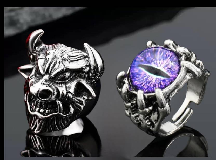 Trendy Unisex 3D Dragon Purple Eye & King Demon Ring Combo (Pack of 2)