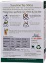 Put one tea stick in a pre warmed cup and add freshly boiled water. stir the tea stick to agitate and circulate the leaves to obtain desired strength for optimal flavour allow the tea stick to brew for 3 minutes remove and add sugar or honey as desired.
