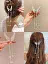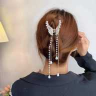 Sunshiny Pearl Tassel Butterfly Metal Clature Korean Hair Accessories For Girls & Women Hair Claw (Gold)