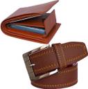 SunShopping Wallet & Belt Combo (Tan, Brown)