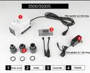 Model : XDP-3500, Voltage : DC24V, Power : 30W, H-max : 3.5m, Output : 3500L/h, Hose Adapter : 20/25/32mm, Cable length : 2.5m, Weight : 1.1kg, Dimensions L×W×H : 135×76×95mm