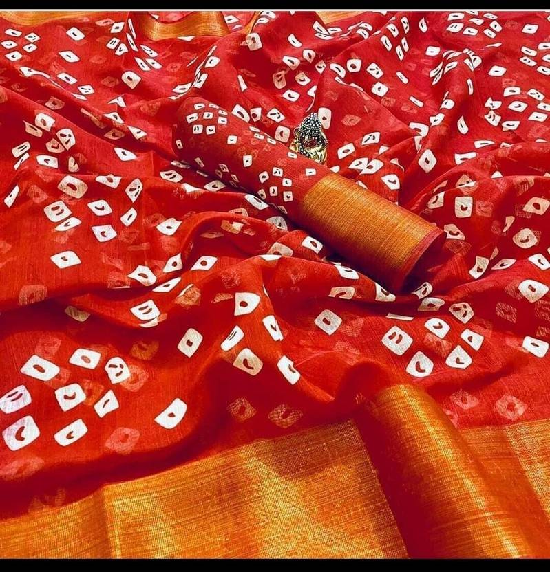 Printed Bhagalpuri Art Silk Saree (Orange)