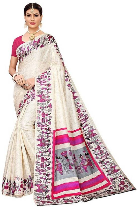Saadhvi Women's PINK art silk printed Saree With Blouse(VIVO PINK)