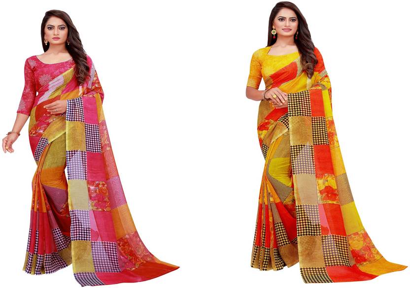 Suntex Printed Daily Wear Georgette Saree (Pack of 2, Multicolor)