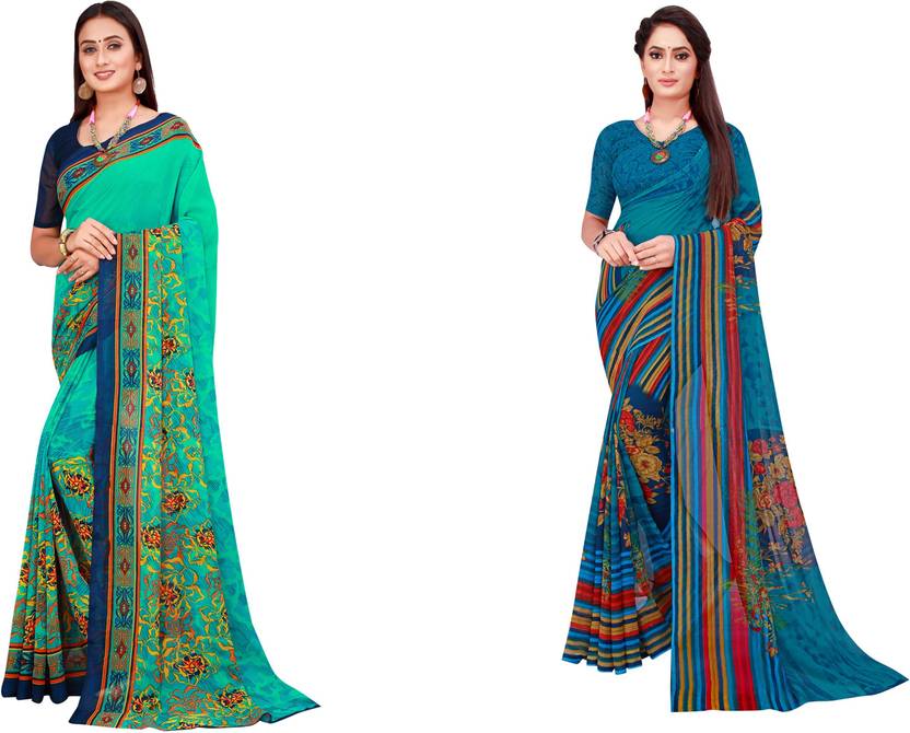 Buy this Beautiful printed saree packed of 2 Georgette saree Design with geomatiric print , This saree comes with an unstitched blouse piece , Saree Length: 5.2 metres plus 0.8 metre blouse piece