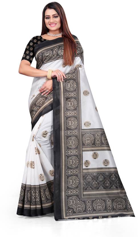 Self Design Bhagalpuri Art Silk Saree (White, Black)