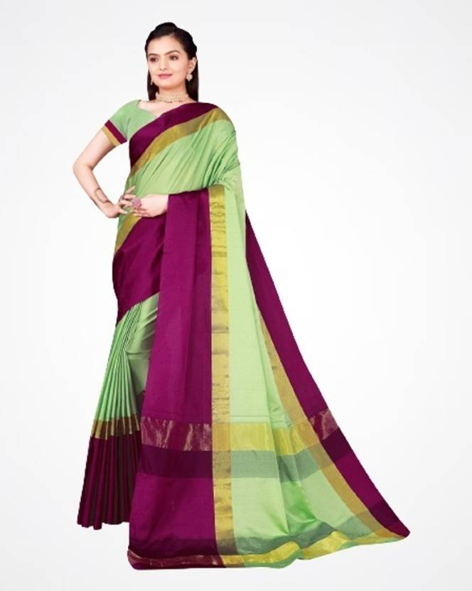 Be the cynosure of all eyes wearing this Pista coloured sarees from the house of Saadhvi. Made of Cotton Silk, this saree will keep you comfortable throughout the day. The fine Work enhances the visual appeal of this saree. each saree measures 5.5 m and it comes with a 0.80 m blouse piece.