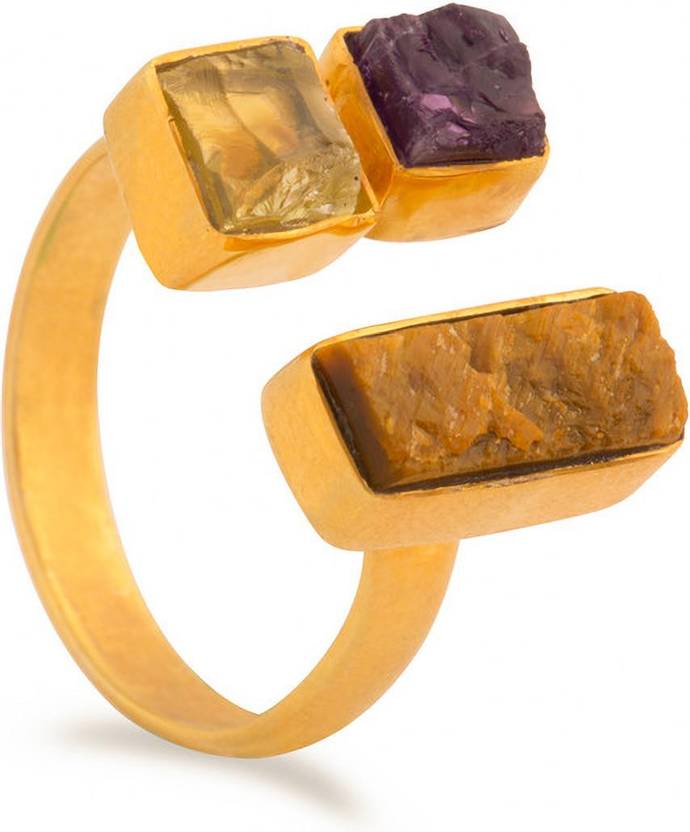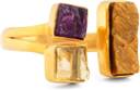 SUNYARAN THYME RING Brass Cat's Eye, Amethyst Gold Plated Ring