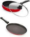 1 Pcs Fry Pan with Glass Lid (22 cm), 1 Pcs Dosa Tawa (28 cm)