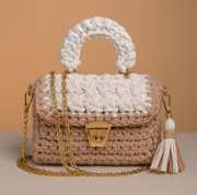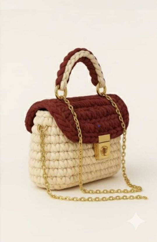 Destiny Ent handmade crochet handbag, crafted with precision using premium cotton yarn. The elegant combination of beige and white tones exudes sophistication, while the intricate woven pattern reflects fine craftsmanship. Designed for modern women who love sustainable and unique accessories, this bag seamlessly blends style with practicality.The bag features a comfortable braided handle and a detachable golden chain strap, allowing you to carry it as a chic shoulder bag or a classy handbag. The secure twist-lock closure ensures your essentials remain safe, while the decorative tassel adds a trendy boho touch.Perfect for daily use, brunches, or special occasions, this crochet handbag complements both ethnic and western outfits. Lightweight yet sturdy, it offers ample space for your phone, wallet, and small accessories. Add this eco-friendly and fashion-forward accessory to your collection and showcase your love for artisan-made products.