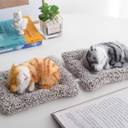 Showcasing a realistic sleeping pose, this plush cat toy is designed with intricate details that bring it to life. Its curled-up position, delicate facial features, soft head hair, well-defined ears, and carefully shaped legs create a charming and cosy look. The plush pet pad material enhances its warmth, making it a delightful addition to any home decor, play area, or relaxing space.