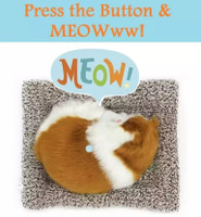 • Interactive Meow Sound: Includes a gentle "meow" sound when pressed, adding an interactive touch., Compact Size: Small and lightweight, fits easily on car dashboards or as a shelf decoration., Perfect Gift: A great gift for cat lovers, children, or anyone who enjoys cute and cuddly toys.