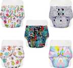 Superbottoms Pack of 5 BASIC Reusable Cloth Diapers | Adjustable, Washable |3M-3Y