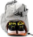 Main Compartment, Dual Handle with Press Button Fastening, Accessory Pockets Inside, Shoe Pocket on Side, Stitch Detail, Detachable Adjustable Shoulder Straps, Zippered Pockets with Flap at Front
