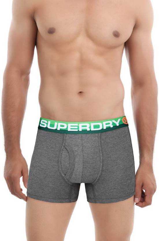 Article number: M31KW001F1. Grey boxer briefs with green and white accents, has a contrast striped elasticated waistband with branding, panelled construction, double-layered front pouch with an opening, branding below the waistband on the back, stitched detail throughout. Underwear that fits like a second skin is a dream come true. Wear this pair under your favourite summer shorts and show off the colourful waistband for maximum effect.