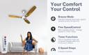 Featuring a highly efficient BLDC motor, this ceiling fan operates effortlessly while consuming minimal power, capped at a maximum of up to 35 W. Moreover, the motor operates silently, generating minimal heat and ensuring a prolonged lifespan for this ceiling fan. Thus, this ceiling fan is energy-efficient and reliable.