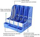 4 Compartment Plastic File Organizer with Pen Holder for Home & Office / File Rack With Pen Stand Easy storage and easy to take out: you can put the file organizer close to you, you don't need to take time to search for it. Foldable: Our magazine file holder is easy to assemble, and you can disassemble it for storage when you do not need them.Application: This plastic file folder divider is suitable for many occasions: school: office, home, or personal file storage.This magazine file holder comes with classify label in each compartment. You can categorize your documents effectively. It is a multifunction file holder organized which is not only portable but also reliable. It can be set up on the desk for high-quality exceptional convenience with a sturdy surface.Our foldable magazine file holder is large in capacity and with fine workmanship.It comes with 4 individual compartments, which can be used for classification and organization.This file holder organize is collapsible and can fold into the thickness of a book to save space when not in use. Meanwhile, it can be expanded to 4 compartments to store files, magazines, documents, and books.