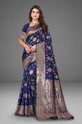 Elevate your ethnic style with this luxurious Banarasi Silk Jacquard Saree, crafted to perfection for a timeless appeal. Featuring intricate woven patterns and a rich zari border, this saree showcases the grandeur of traditional Banarasi craftsmanship. The lustrous silk fabric offers a graceful drape and a regal finish, making it perfect for weddings, festivals, and special occasions. Comes with a matching unstitched blouse piece to complete your elegant look.