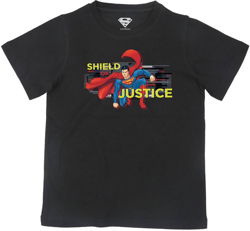 Superman Boys Typography, Printed Pure Cotton Regular T Shirt (Black, Pack of 1)