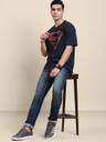 Men Graphic Print Round Neck Pure Cotton Blue T-Shirt
