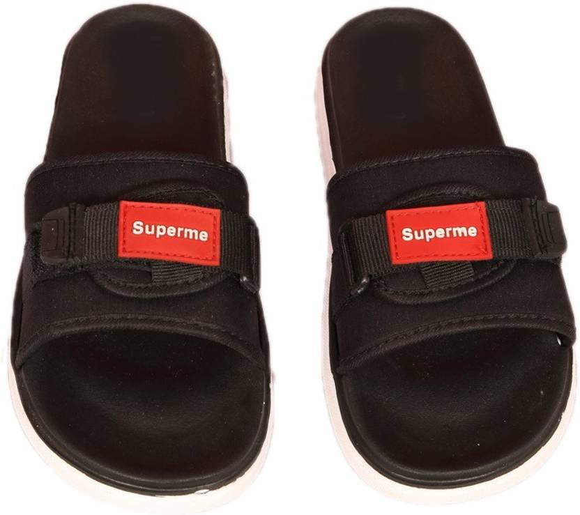 superme Men's Slippers-Black Men Slippers (Black, White , 7)