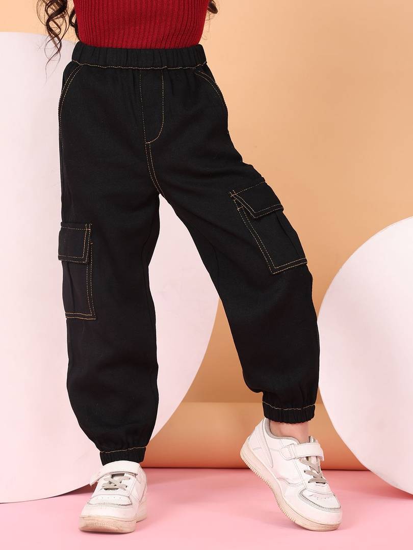 Available in Mehndi Green, Peach, Navy Blue, and Black, these pants are perfect for girls. Whether its casual outings, playtime, or daily wear, suitable for kids aged 4 to 12 years