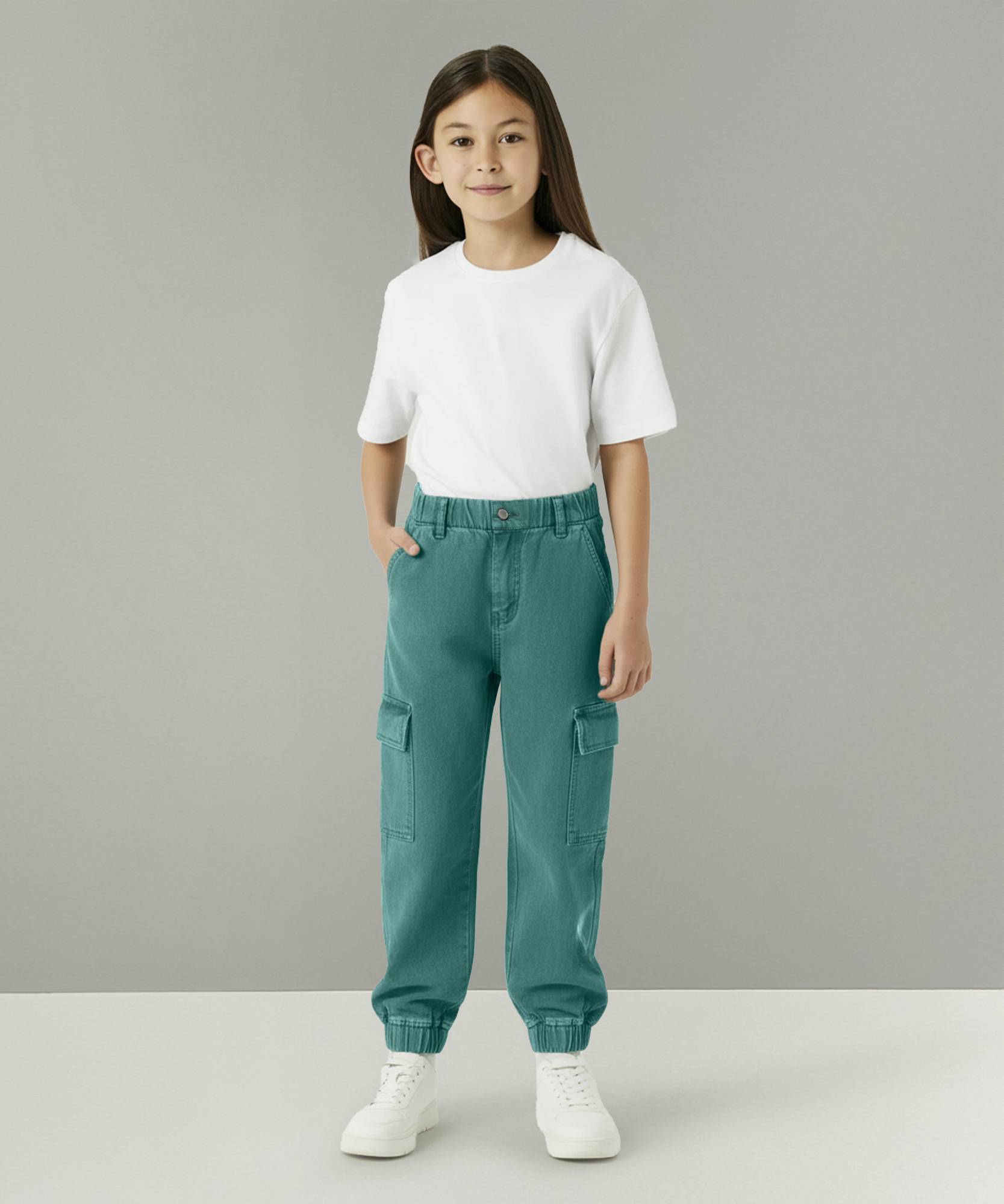 Superminis stylish and comfortable look with these trendy kids cargo pants. Designed with soft twill fabric, these jogger-style pants ensure all-day comfort while keeping your child active and free to move. The elastic waistband provides a snug yet flexible fit, making it easy to wear and remove. Featuring side flap pockets, these cargos add a fashionable touch along with utility for carrying small essentials.