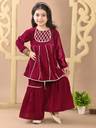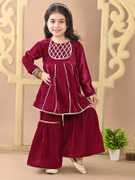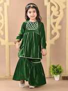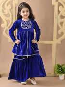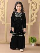 Girls Black Velvet Kurta with Sharara Set Ethnic Wear with Yoke Design