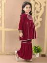 The Superminis Girls Velvet Sharara Kurti is a timeless blend of elegance and comfort, designed to make your little one shine on special occasions. Ideal for girls aged 18 months to 8 years, this outfit is made from velvet fabric, ensuring a comfortable feel that's gentle on the skin. Featuring a classic round neck and full sleeves, the kurti exudes a traditional charm, while the solid pattern enhanced with delicate lace ornamentation adds a elegant touch. Available in four stunning colors—green, black, blue, and wine—this outfit offers versatility and style for festive celebrations, family gatherings, or cultural events.