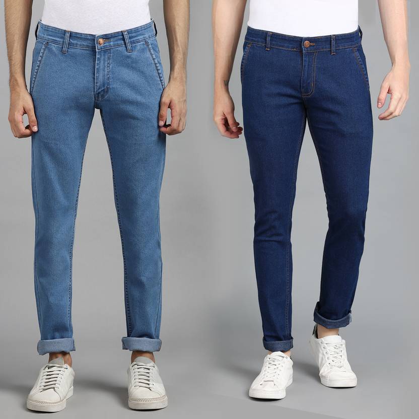 Stylish & In-vogue Washed Light Blue & Blue Pack of 2 Jeans, Cotton Lycra Fabric with Stretch (98% Cotton 2% Elastane) - To give you extra comfort and agility, Slim Fit; Mid-Rise; Regular Length; Zip Fly with Buttoned Closure; 2 Front & 2 Back Pockets; Solid Pattern, Perfect for Casual, Party & Office Wear, Wash Care - Mild Wash ; Wash dark colors separately; Disclaimer - There may be slight variation in shade and colour due to photographic effects and monitor settings