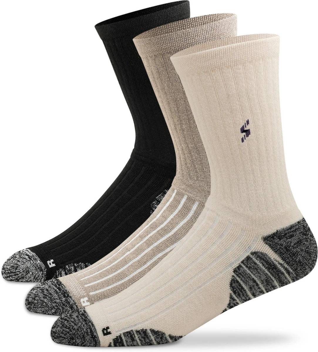Premium Cotton Comfort: Made with high-quality cotton for softness, durability, and long-lasting wear., Moisture-Wicking Technology: Keeps feet dry and sweat-free during hikes, workouts, or daily use., Cushioned Sole Support: Extra padding in the heel and toe areas for maximum comfort on rugged terrains., Breathable & Odor-Control: Mesh ventilation zones allow airflow, preventing odor and overheating., Winter Performance Design: Ideal for cold weather – provides warmth without overheating your feet., Unisex & Versatile Fit: Designed to fit both men and women comfortably; stays in place without slipping., Multicolor Pack of 3: Stylish assorted colors to match different outfits and moods., Calf-Length Coverage: Offers added protection and support to lower legs during outdoor activities.