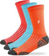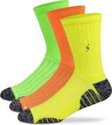 Premium Cotton Comfort: Made with high-quality cotton for softness, durability, and long-lasting wear., Moisture-Wicking Technology: Keeps feet dry and sweat-free during hikes, workouts, or daily use., Cushioned Sole Support: Extra padding in the heel and toe areas for maximum comfort on rugged terrains., Breathable & Odor-Control: Mesh ventilation zones allow airflow, preventing odor and overheating., Winter Performance Design: Ideal for cold weather – provides warmth without overheating your feet., Unisex & Versatile Fit: Designed to fit both men and women comfortably; stays in place without slipping., Multicolor Pack of 3: Stylish assorted colors to match different outfits and moods., Calf-Length Coverage: Offers added protection and support to lower legs during outdoor activities.