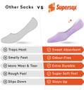 Elevate your sock game with Supersox Women Solid Peds/Footie/No-Show! Say goodbye to slipping and sliding with these ultra-comfy, non-slip wonders. Made from breathable cotton, they keep your feet feeling fresh and cozy all day long. Whether you're rocking loafers or sneakers, these socks are your perfect companion. With superior comfort and moisture-absorbent properties, they're a must-have addition to your wardrobe. Plus, their smart knitting and combed cotton ensure a snug fit without sacrificing style. Step out in confidence and style with Supersox!