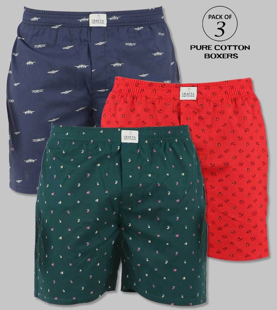 Casual Pure Cotton Printed Boxers For Men (Pack of 3)