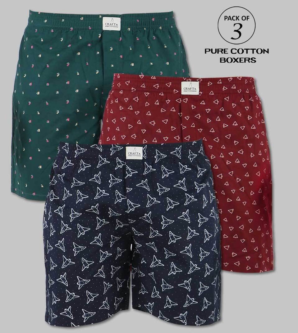 Casual Pure Cotton Printed Boxers For Men (Pack of 3)