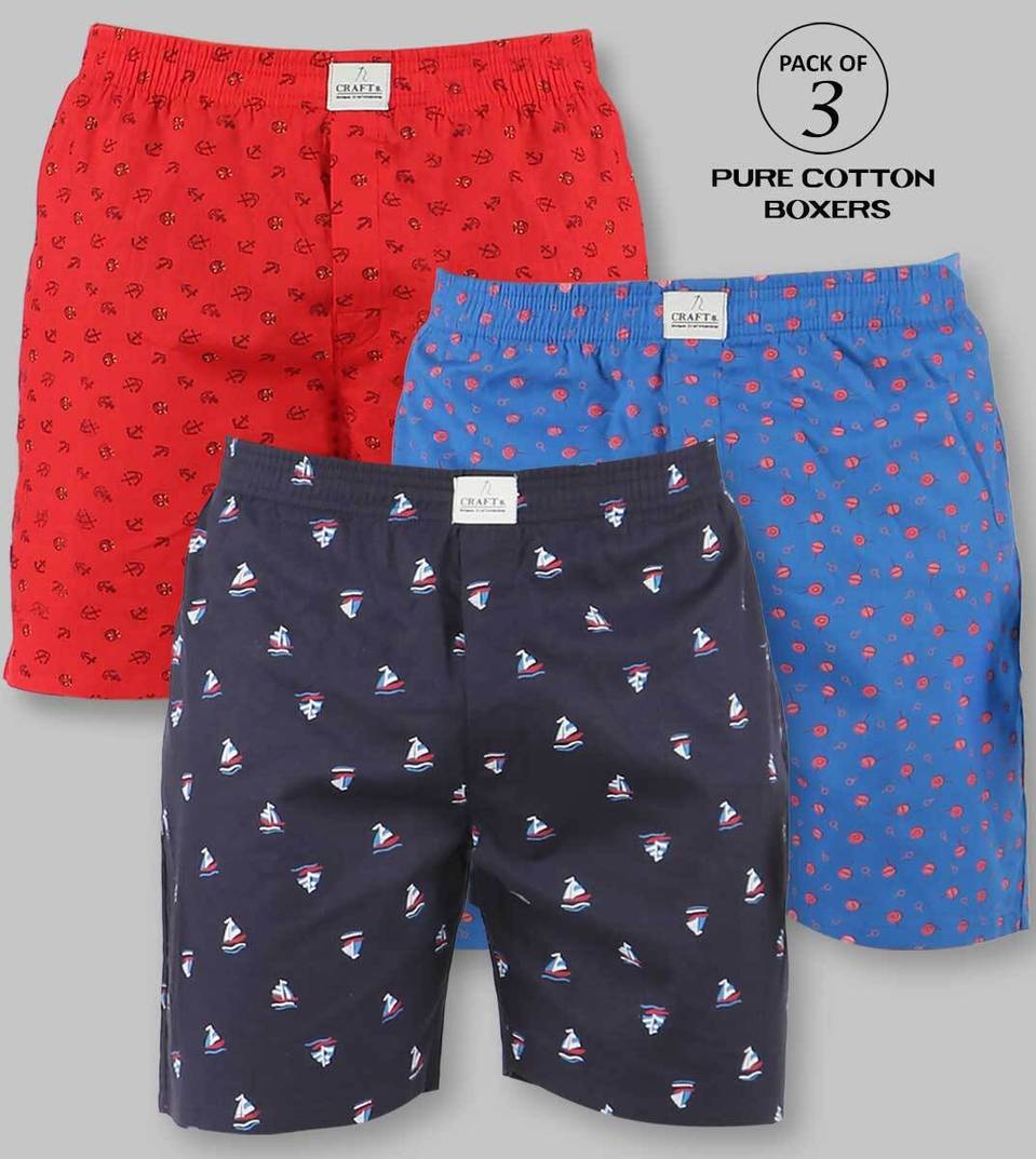 Casual Pure Cotton Printed Boxers For Men (Pack of 3)
